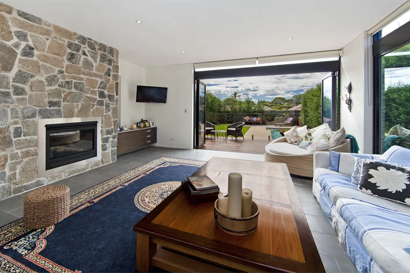 Architectural simplicity defines this stunning beach-style home. Sweeping living areas are separated by breezeways and pavilions accentuating the sense of space, light and air. Its clever use of raw-faced natural stone, both inside and out, provides a dramatic and organic feel.